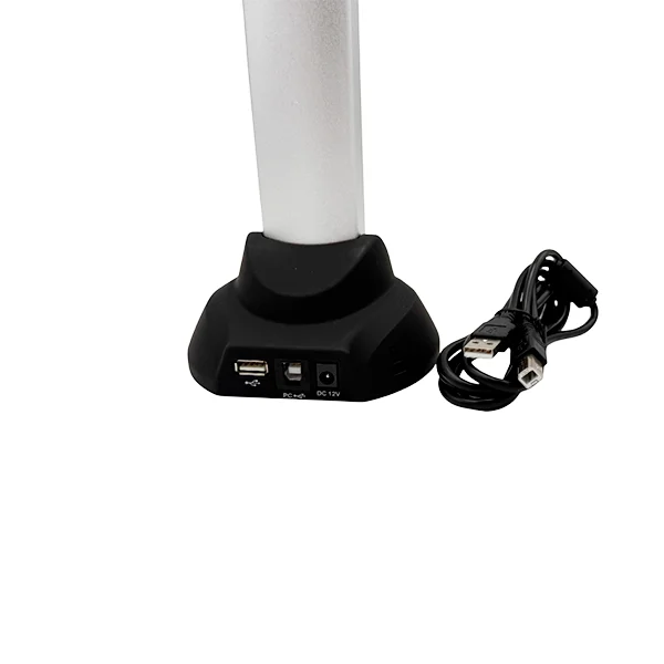 Шарнирная конструкция и выдвижной штатив позволяют настраивать рабочую область под форматы A4 и A3. Светодиодная LED-подсветка регулируется с помощью сенсорной кнопки. На корпусе есть кнопка автофокуса, кнопки приближения/удаления, индикатор питания и выбор режима работы.